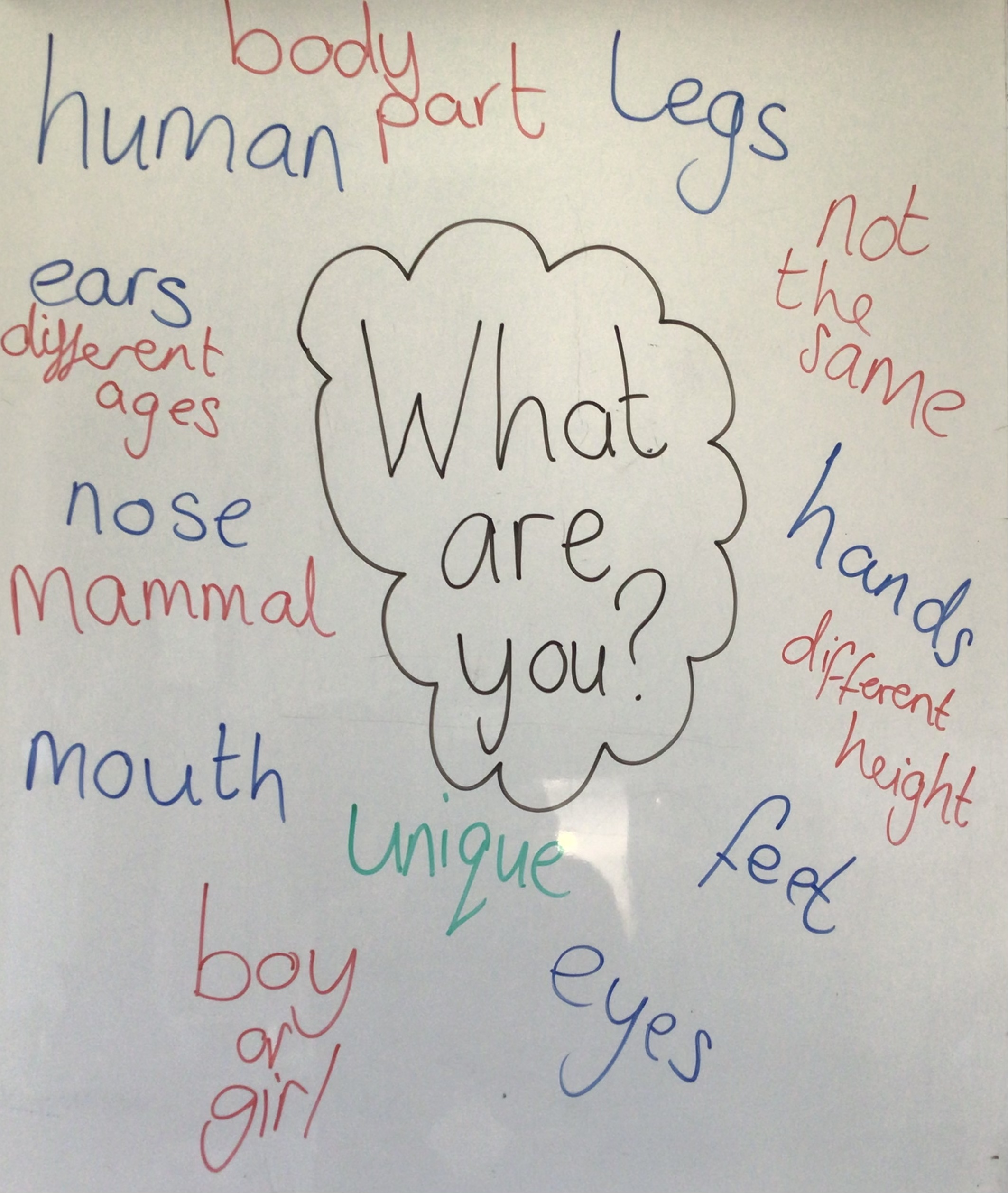 We created a mind map including all our ideas about the question. We then watched a video about humans and added more learning to answer the question (red pen).