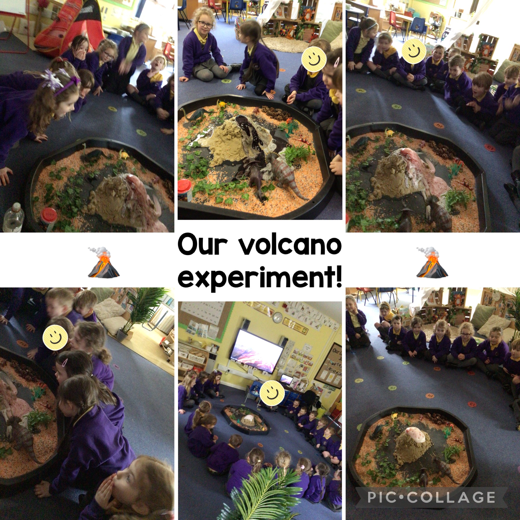 Reception enjoyed a science experiment today and explored chemical reactions. This morning during a shared writing task we predicted and each wrote down what would happen during our experiment, with lots of us predicting that the lava would explode. This afternoon we watched the volcano erupting after adding vinegar to the bicarbonate of soda! ? ??