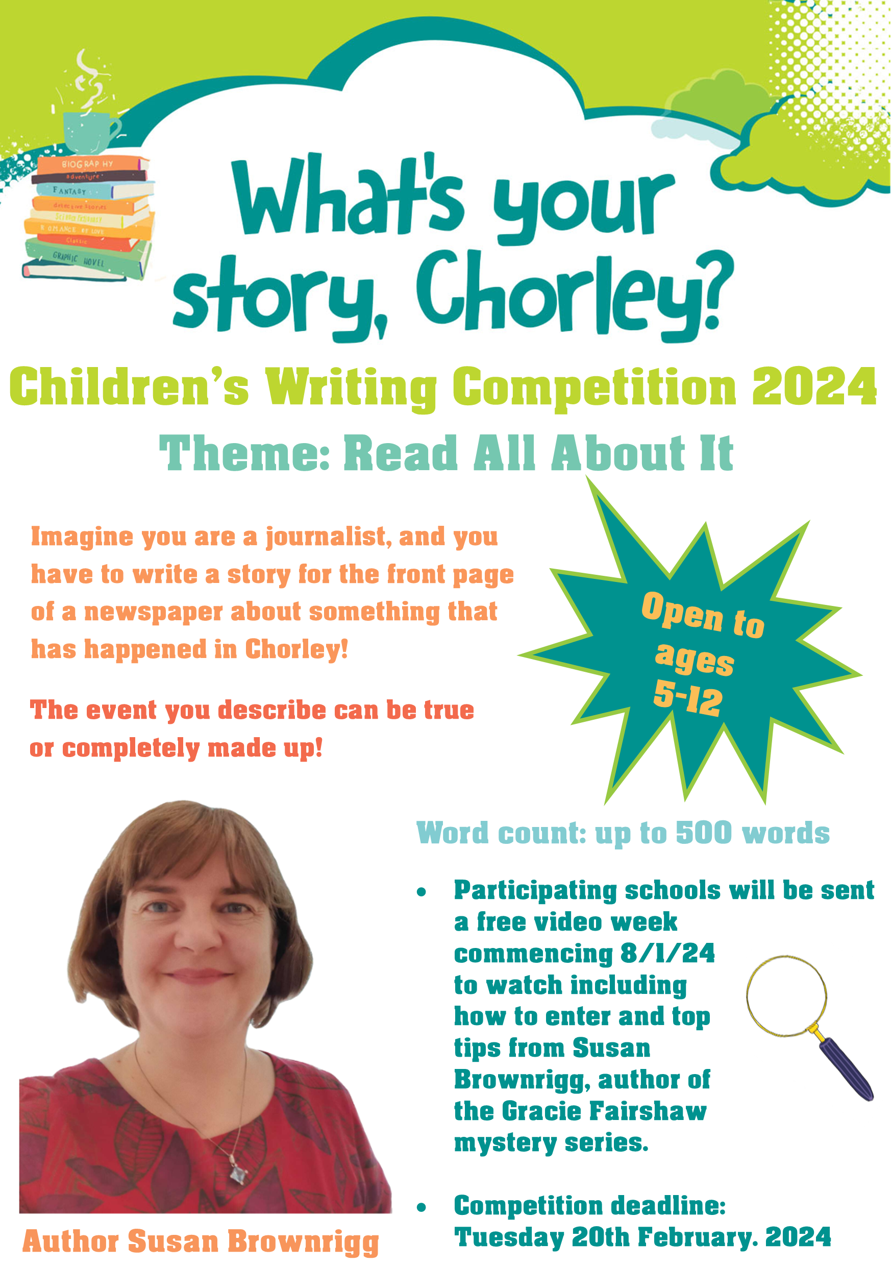 We are inviting the children to take part in our local writing competition. The theme 'Read All About It' has been inspired by local children's author Susan Brownrigg.